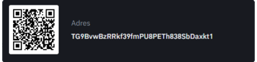 Copy Address : TG9BvwBzRRkf39fmPU8PETh838SbDaxkt1